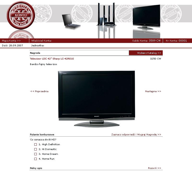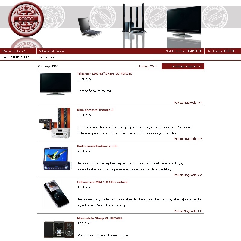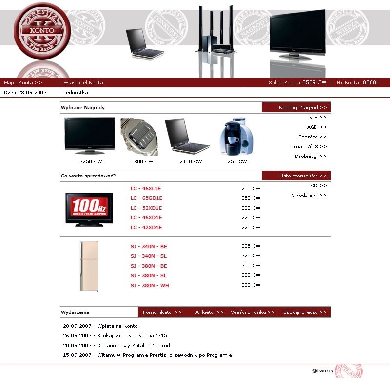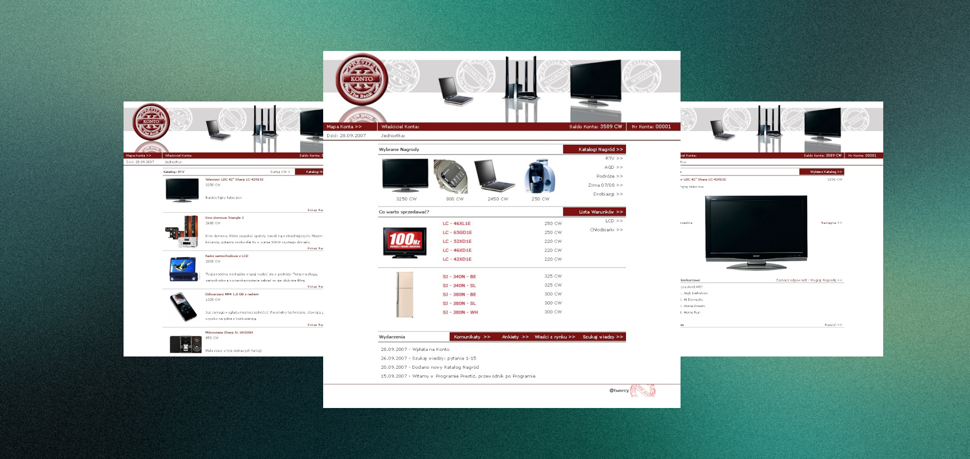 Program Prestiż+ - wdrożenie dla biura sprzedaży firmy SHARP. W przypadku tego wdrożenia, nacisk kładziony był na zwiększenie rotacji produktów w magazynach partnerów handlowych dystrybutora produktów Telewizorów Sharp. Platfroma dawała możliwość zarządzania półką w obiekcie handlowym, a głównym kryterium przyznawania nagród uczestnikom, był udział w konkursie.